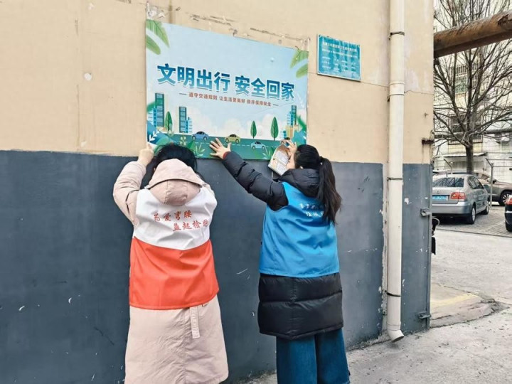 同时,志愿者们化身文明劝导员,对辖区内电动车乱停乱放、行人横穿马路、飞线充电等不文明行为进行温和劝导,引导居民自觉摒弃交通陋习,规范停放车辆,主动遵守交通规则。此外,志愿者们还在社区宣传栏、单元门口张贴宣传海报,通过居民群推送安全出行提示,构建全方位宣传格局,让文明出行理念深入人心。